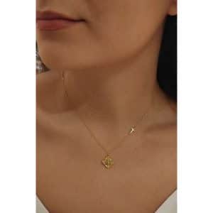 €317,00Γυναικείο κολιέ Κωνσταντινάτο από κίτρινο χρυσό 14 καρατίων με μενταγιόν ρόμβο και λείο σταυρό ενσωματωμένο στην αλυσίδα πιο επάνω. Το μενταγιόν φέρει το σύμβολο IC XC NI KA σε υπερυψωμένη…
