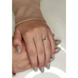 A solitaire ring with a twisted design made of 18k white gold. It features a natural white brilliant-cut diamond that comes with a gemologist’s guarantee. Ideal for a marriage proposal.