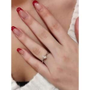 Solitaire ring with white natural brilliant cut diamonds of very good clarity. In the center is a larger 0.15ct and on the right & left it is decorated with 6…