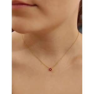 Chain necklace with a small square cross pendant decorated with red enamel and a white cubic zirconia stone in its center. It is made of yellow gold plated 925° silver…