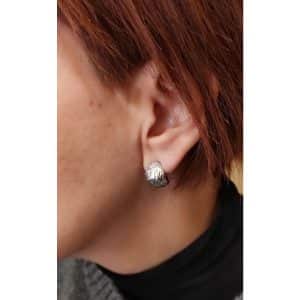 Pair of earrings with an embossed curved design that hugs the earlobe. Made of white platinum-plated silver 925°.