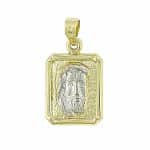 14k yellow gold rectangular pendant charm with the face of Christ in white relief. Ideal gift for the newborn baby boy's cradle or carriage.