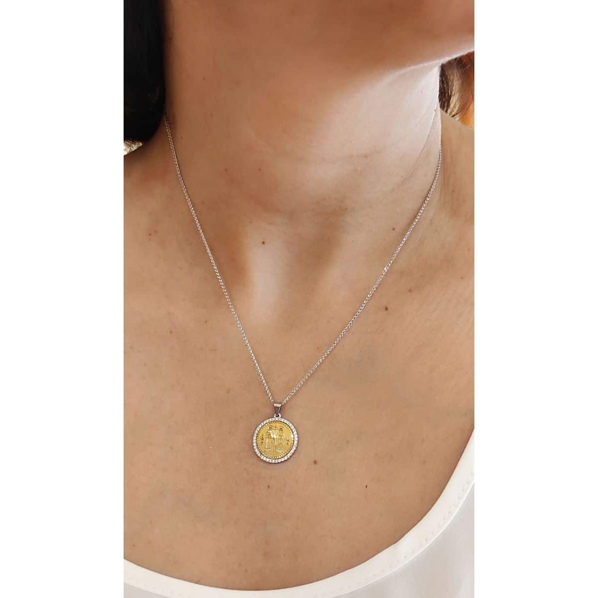 Two Colored Gold K9 Christian Charm With Stones KR95DP3