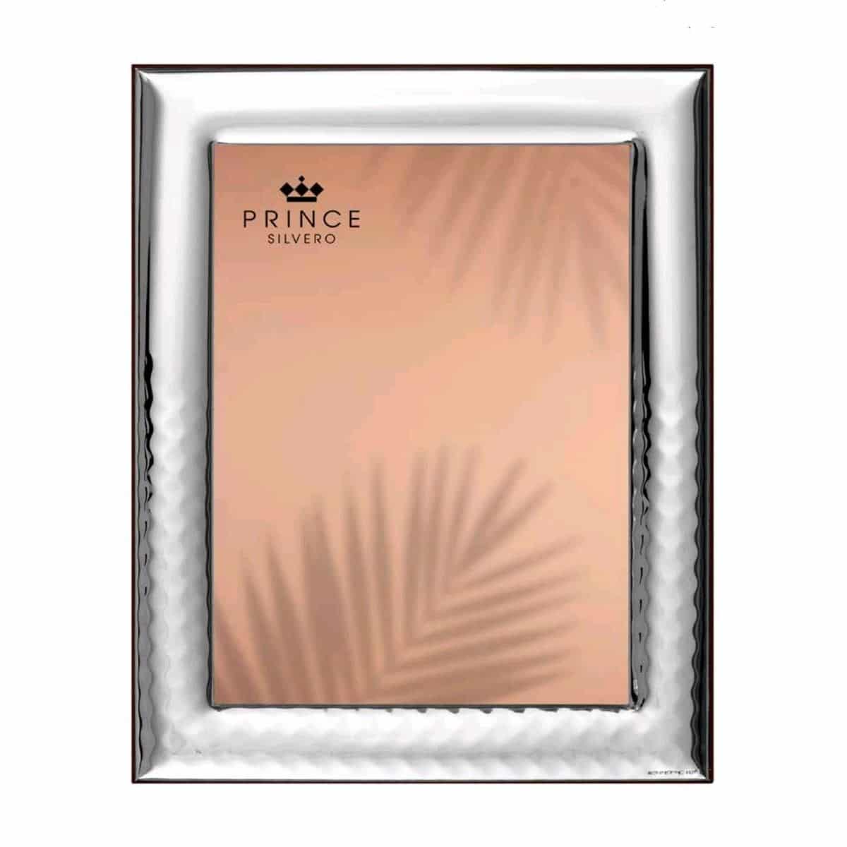 Wide photo frame with half of the lower surface polished and light hammered and the other half of the top plain lustrous. It is made with 950° silver film on a metal alloy, with a special processing that makes it indelible and a brown wooden back. Ideal for a wedding gift and to decorate the house with your most beautiful memories.