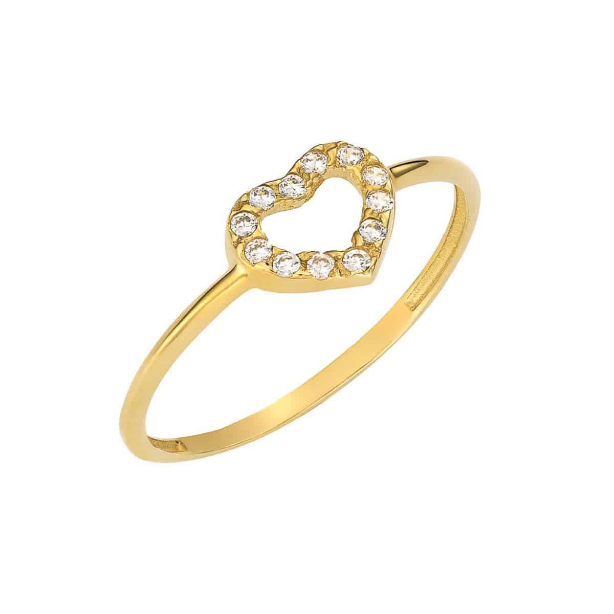 Ring small heart adorned with white cubic zirconia stones, made of 14 karat yellow gold. A beautiful symbol of love.