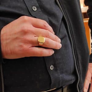 Ανδρικό δαχτυλίδι με τετράγωνο ματ σχέδιο επάνω, από κίτρινο χρυσό 9 καρατίων.