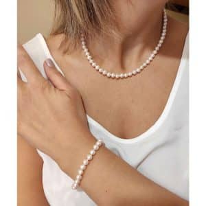 Σετ κολιέ & βραχιόλι με λευκά μαργαριτάρια Fresh Water Pearl 6-6,5mm ποιότητας ΑΑΑ και κούμπωμα από χρυσό 14Κ.