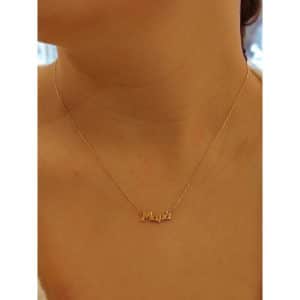 Κολιέ Μαμά σε καλλιτεχνική γραφή από κίτρινο χρυσό 9 καρατίων με επιπλέον κρίκο για αυξομείωση του μήκος. Πολύ ωραίο δώρο για τη μαμά.