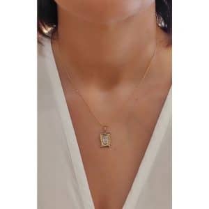 Ορθογώνιο κρεμαστό φυλαχτό διπλής όψης από κίτρινο χρυσό 9 καρατίων. Από τη μία πλευρά έχει ανάγλυφο το πρόσωπο του Χριστού με λευκή επιπλατίνωση ενώ από την άλλη έχει Κωνσταντινάτο. Ιδανικό…