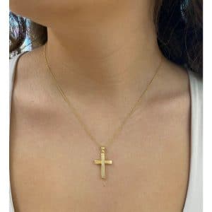 Ανδρικός και βαπτιστικός σταυρός διπλής όψης από κίτρινο χρυσό 14 καρατίων. Από την μία πλευρά του έχει ματ φινίρισμα εξωτερικά και λείο εσωτερικά ενώ από την άλλη αντίθετα λείο εξωτερικά…