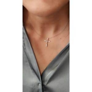 • Κολιέ Σταυρός Από Λευκό Χρυσό Κ9 KO144LP3