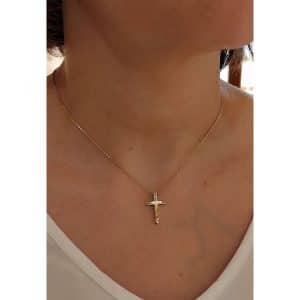 • Κίτρινο Χρυσό Κ18 Κολιέ Σταυρός Με Διαμάντι KO313KP7