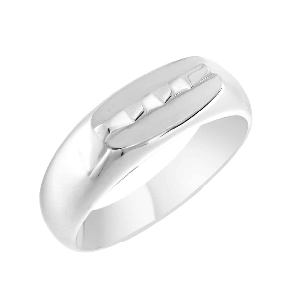 Ανδρικό δαχτυλίδι με ματ φινίρισμα στο επάνω μέρος και λουστρέ στο υπόλοιπο. Είναι κατασκευασμένο από λευκό χρυσό 14 καρατίων.