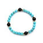 Βραχιόλι με μαλαχίτες διαμέτρου 6,5 χιλιοστών κι ανά διαστήματα όνυχες διαμέτρου 8,5 χιλιοστών πλαισιωμένους από αιματίτες τεχνητού κίτρινου χρυσού χρωματισμού. Το βραχιόλι είναι ελαστικό και προσαρμόζεται εύκολα σε οποιοδήποτε χέρι.