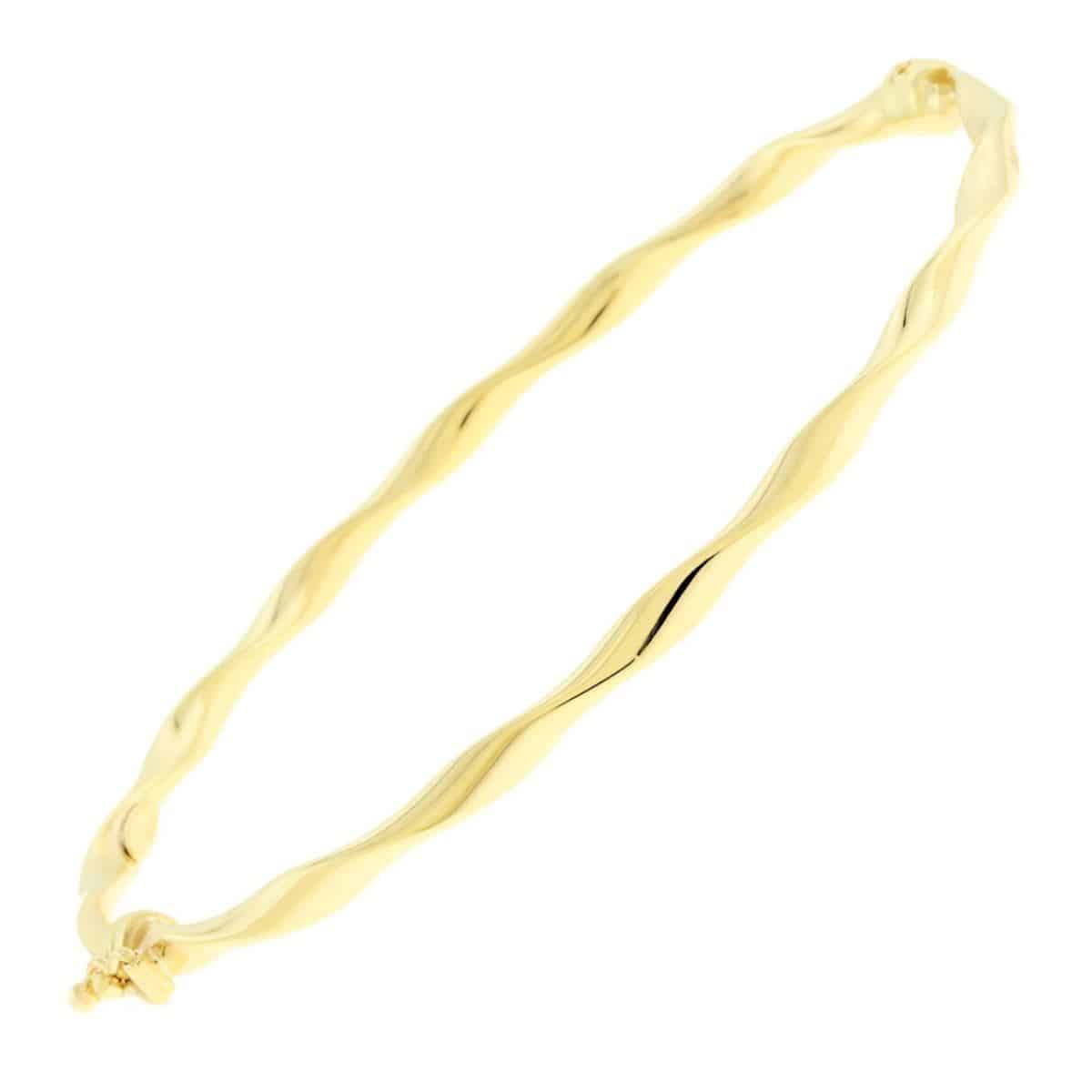 Βραχιόλι χειροπέδα με στριμμένο λείο σχέδιο και μηχανισμό επαναφοράς από την άλλη πλευρά του κλιπ, από κίτρινο χρυσό 14 καρατίων.