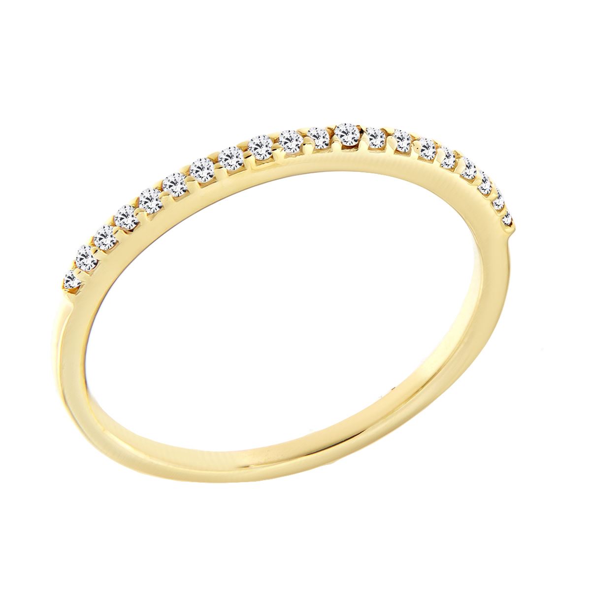 Δαχτυλίδι μισό ολόβερο με σειρά λευκών ζιργκόν πετρών από κίτρινο χρυσό 14 καρατίων. Ιδανικό να φορεθεί δίπλα στο μονόπετρο και την βέρα.
