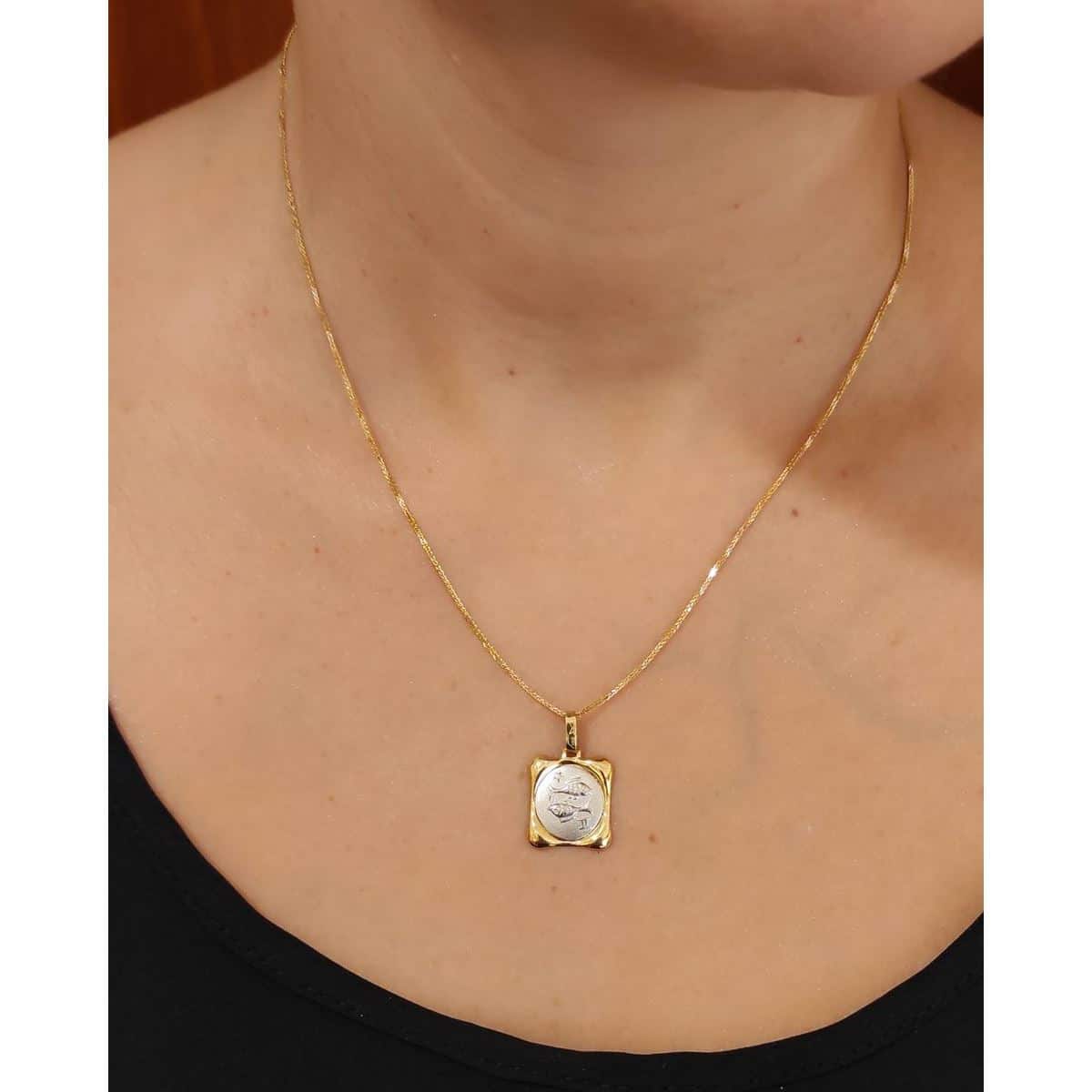Ανάγλυφο κρεμαστό ζώδιο Ιχθύς, από λευκό ματ και κίτρινο λείο χρυσό 14 καρατίων.