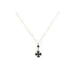 Κολιέ με αλυσίδα με κρεμαστό δάκρυ ροζέτα με κεντρική πράσινη ζιργκόν πέτρα ίδιου σχήματος και μικρές λευκές ζιργκόν πέτρες να την αγκαλιάζουν. Είναι κατασκευασμένο από κίτρινο χρυσό 9 καρατίων. Όμορφο δώρο για την αγαπημένη σας!
