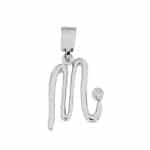 Μεγάλο τρισδιάστατο καλλιγραφικό μονόγραμμα Β από λευκό χρυσό 14 καρατίων με μία λευκή πέτρα ζιργκόν για στόλισμα στο τέλος.
