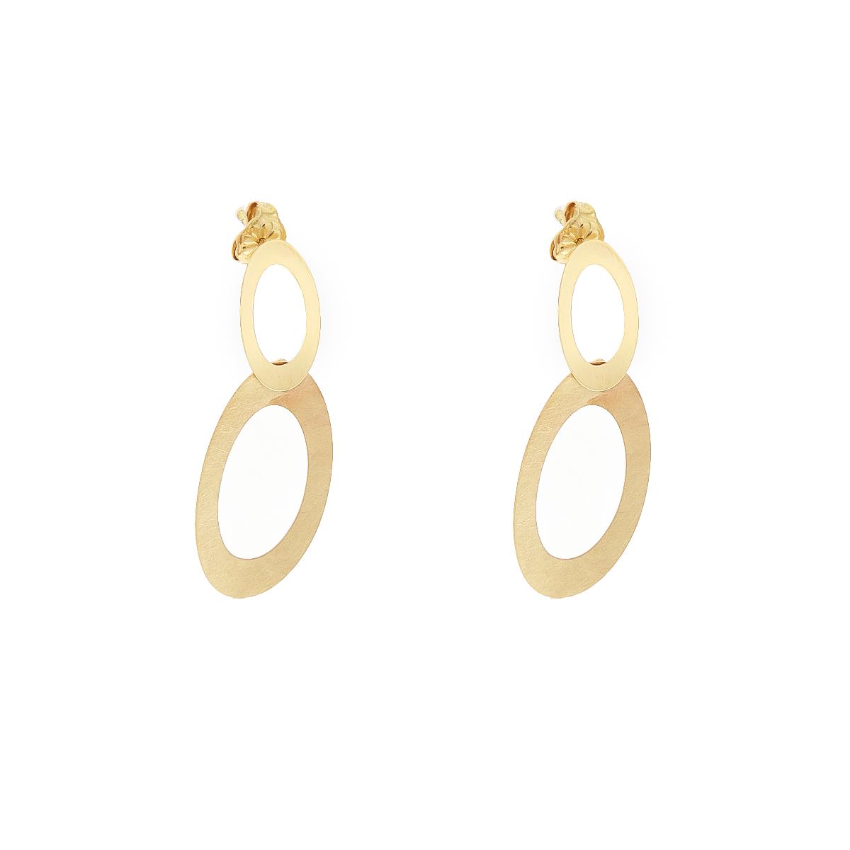 Ζευγάρι σκουλαρίκια κρεμαστοί οβάλ κρίκοι, ο μικρότερος λουστρέ και ο μεγαλύτερος σε ματ του πάγου, από κίτρινο χρυσό 14 καρατίων.