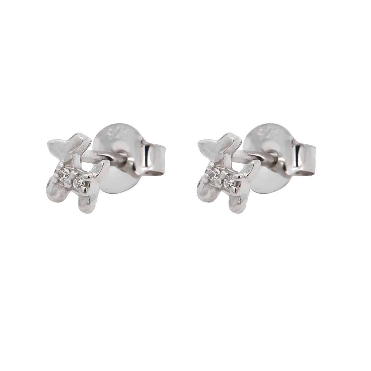 Ζευγάρι σκουλαρίκια πολύ μικρά σκυλάκια στολισμένα με λευκές ζιργκόν πέτρες, από λευκό επιπλατινωμένο ασήμι 925°. Για μικρά κορίτσια ή για δεύτερο σκουλαρίκι.