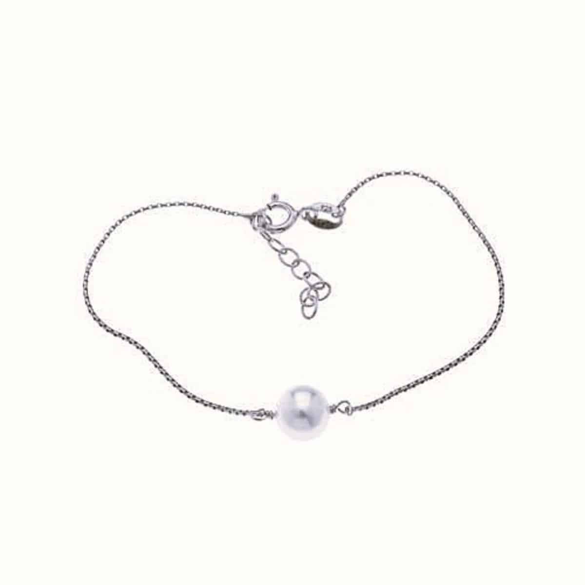 Βραχιόλι με ένα λευκό μαργαριτάρι F.W.P. γλυκού νερού πλεγμένο σε αλυσίδα φίδι. Είναι κατασκευασμένο από λευκό επιπλατινωμένο ασήμι 925°. Επίσης διαθέτει προέκταση με κρίκους για την αυξομείωση του μεγέθους.
