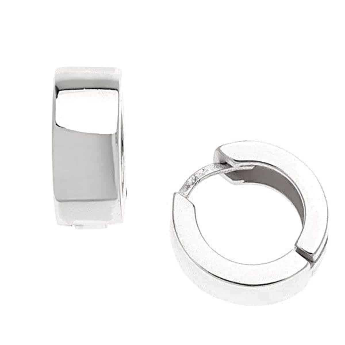 Ζευγάρι σκουλαρίκια μικρά και πλατιά κρικάκια, από λευκό επιπλατινωμένο ασήμι 925°.
