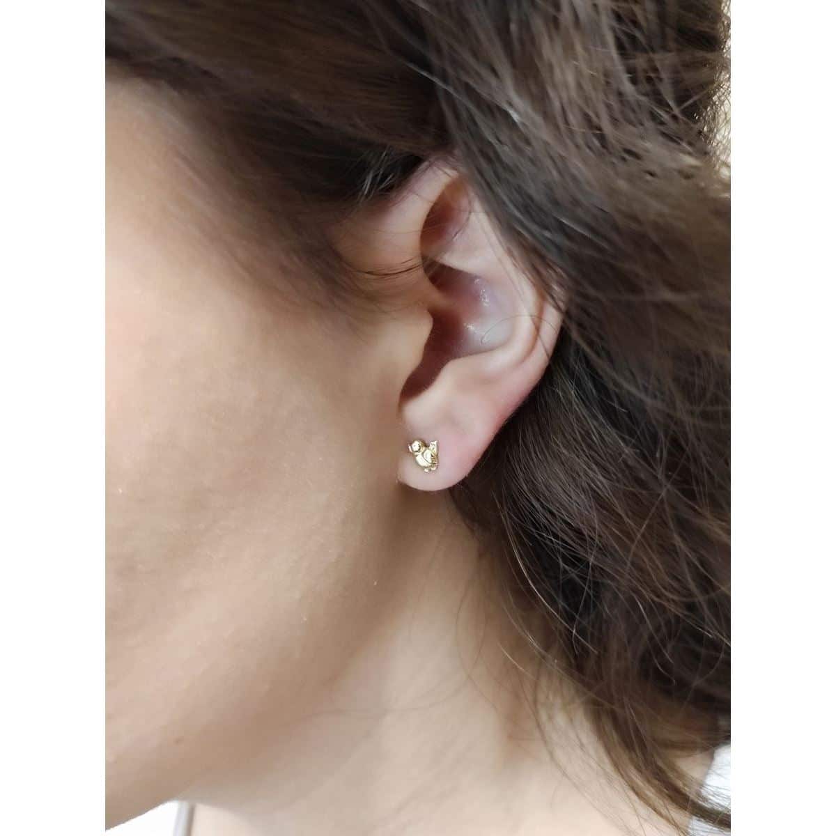 Ζευγάρι σκουλαρίκια πουλάκια, από λείο ανάγλυφο κίτρινο χρυσό 14 καρατίων. Ένα δώρο που θα λατρέψει το κοριτσάκι σας.
