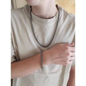 Ανδρική αλυσίδα λαιμού σπίγγα από ανοξείδωτο ατσάλι με γυαλιστερό μαυρισμένο φινίρισμα.