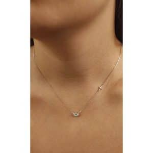Κολιέ Μάτι Με Σταυρό Από Λευκό Χρυσό Κ14 KO191LP5
